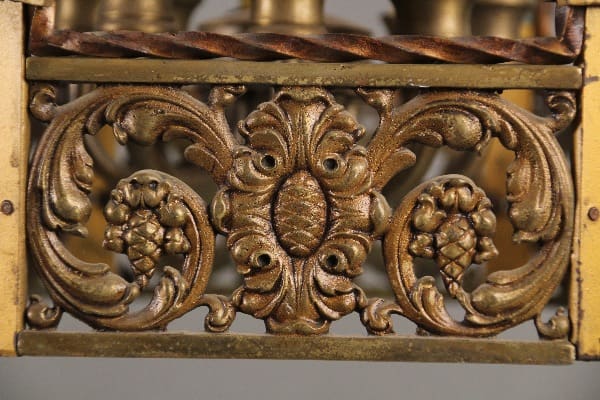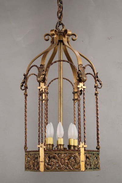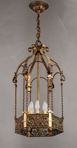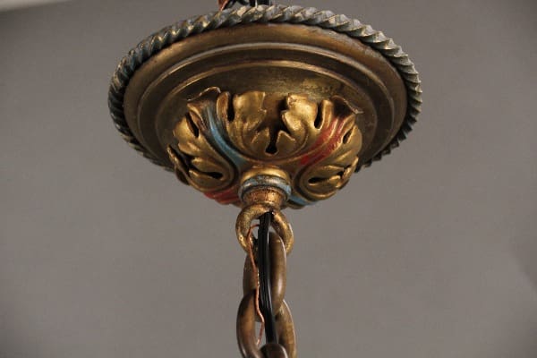 Wonderful 1920’s pendant light with fine casting and original polychrome finish.