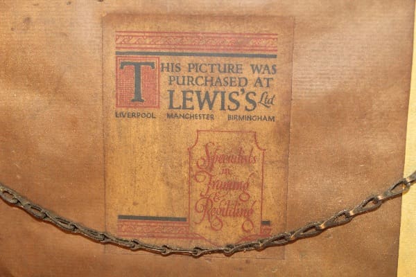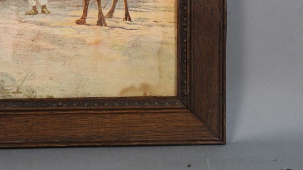 In original frame, retains original label. Some minor water damage on right corner.