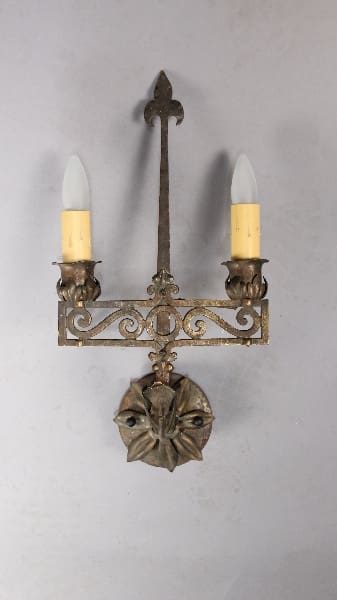 13505. Rare Pair Of 1920’s Sconces With Brass And Iron Construction