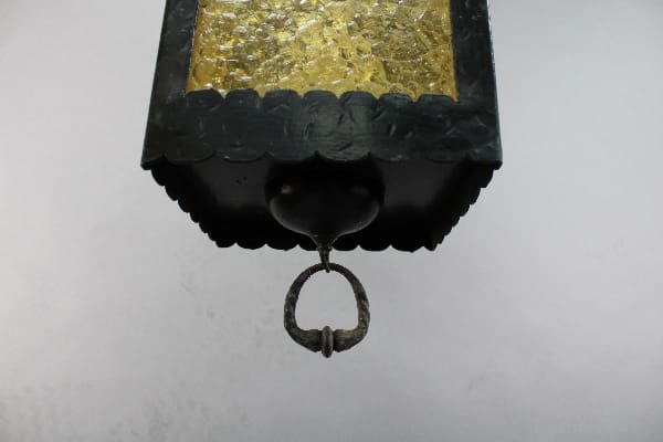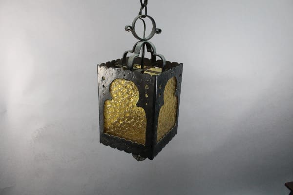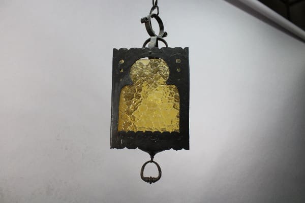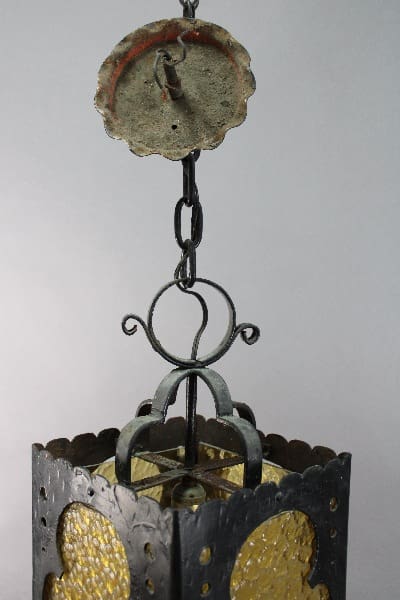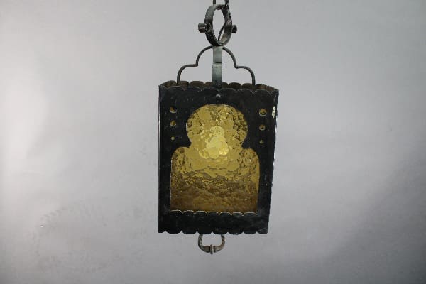 14398. Moorish Wrought Iron Pendant With Amber Glass