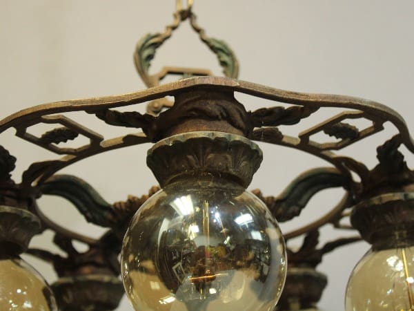 Five light chandelier circa 1920’s. Original finish. 13.5″ H x 15″ W x 15″ D x 25.5″ Total H with chain & canopy