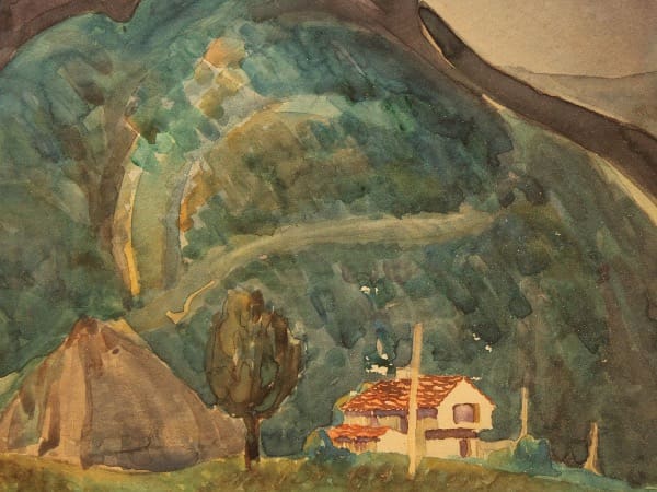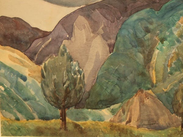 Watercolor in new frame. 19.75″ H x 24.5″ W x 1″ D