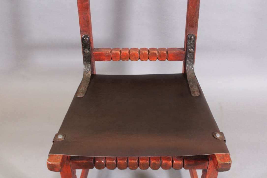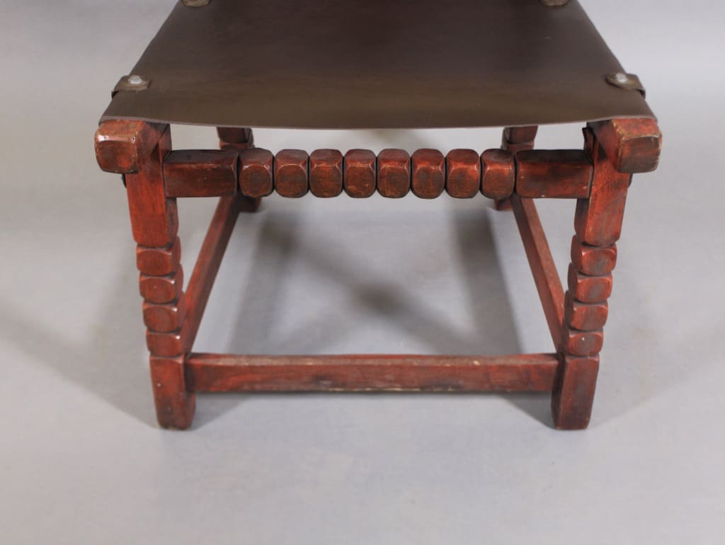 17448. Rare 1920’s Monterey Sling Leather Chair With Original Red Finish