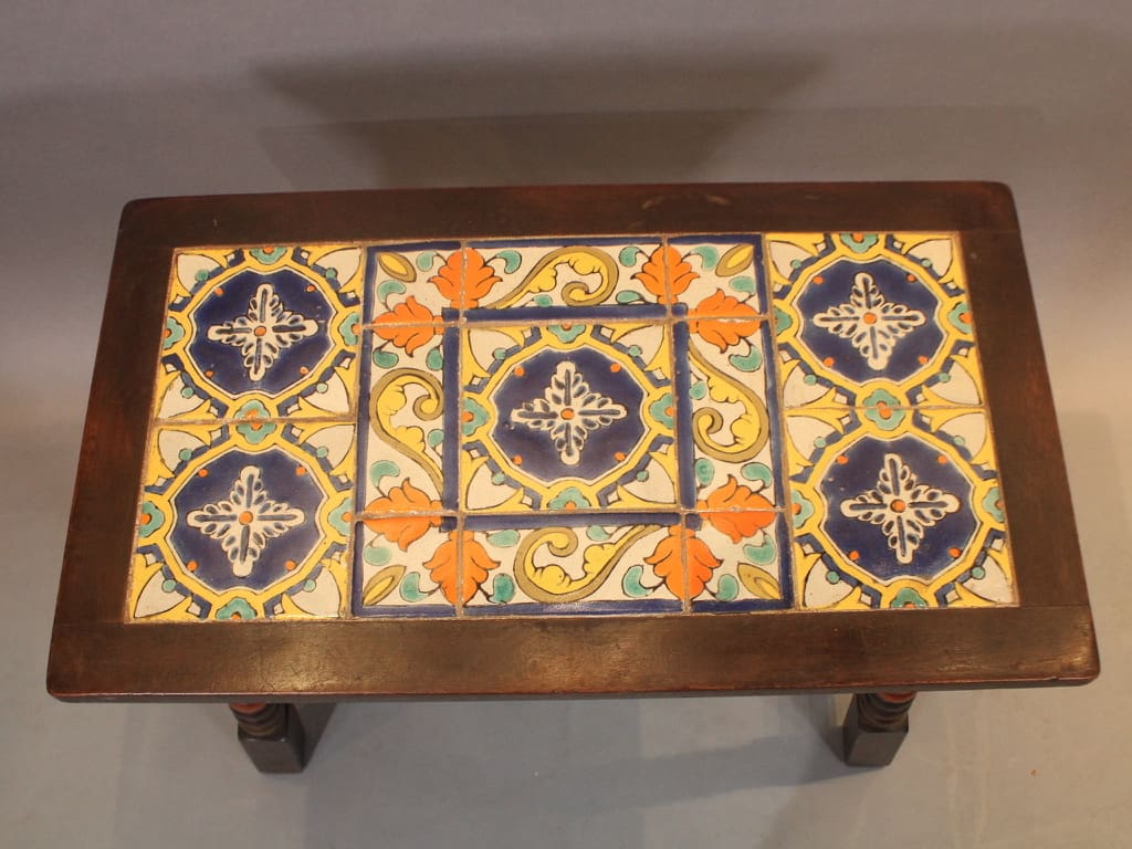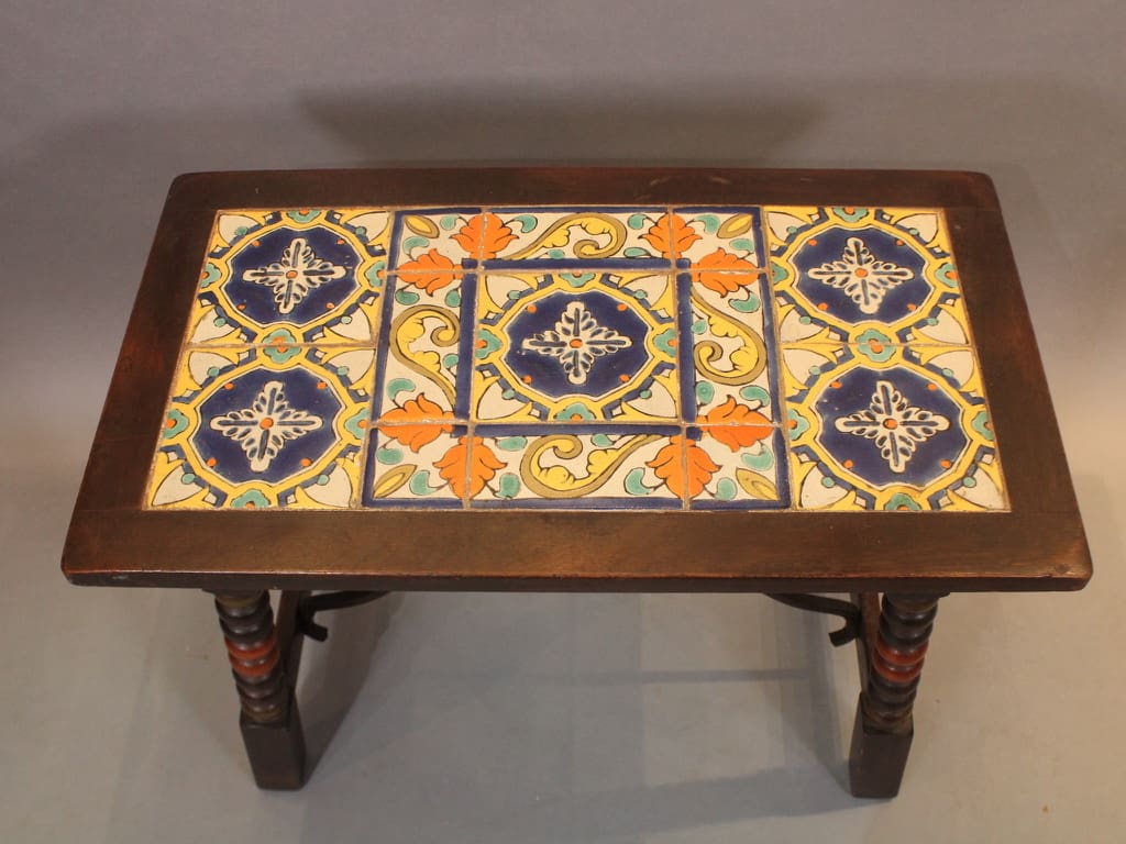 17640. Rare 1920’s California Tiled Table With Iron Trestle