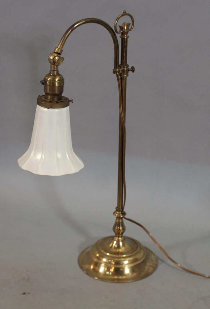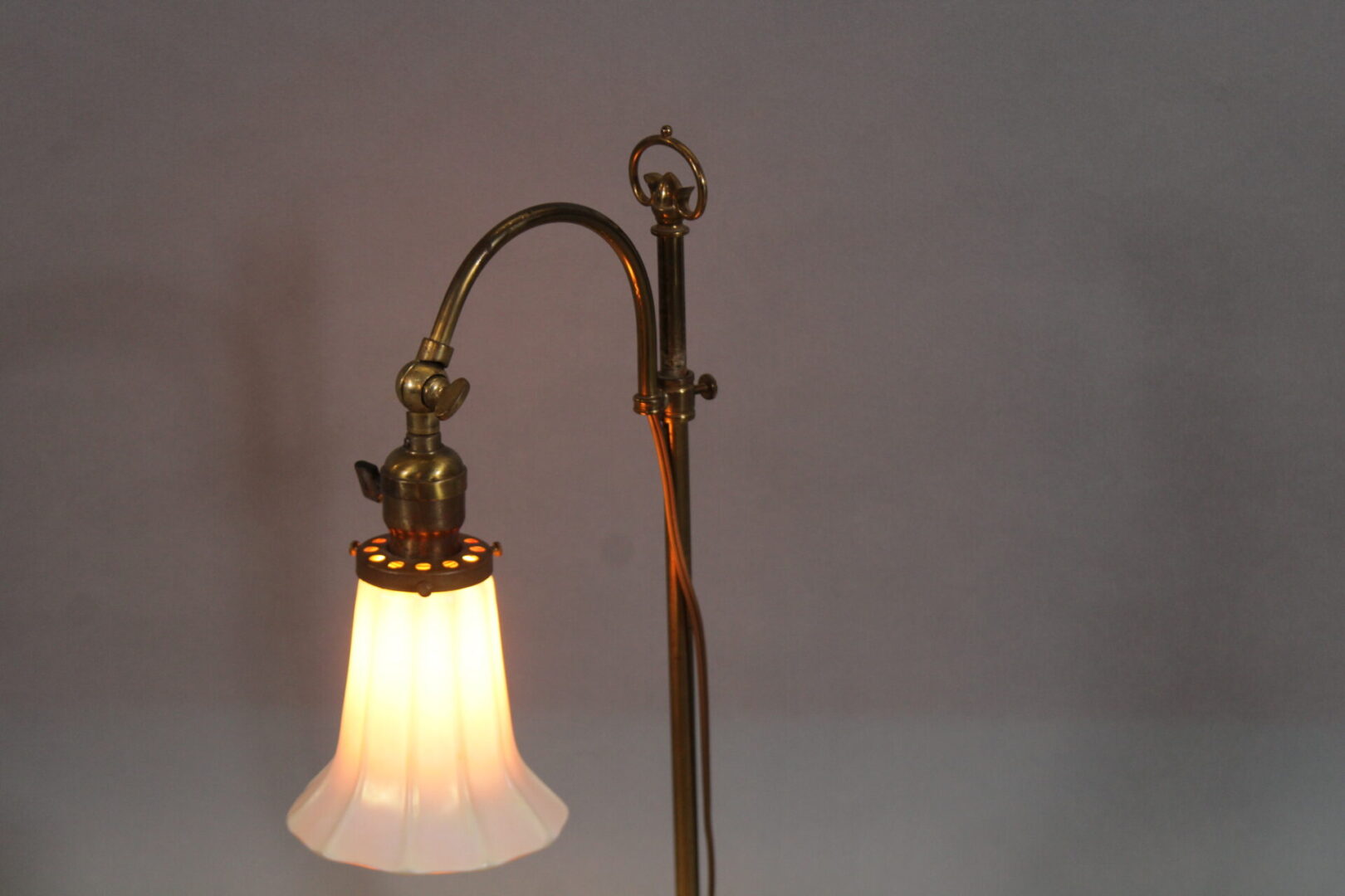 43683. 1920’s Brass Table Lamp With Art Glass Shade