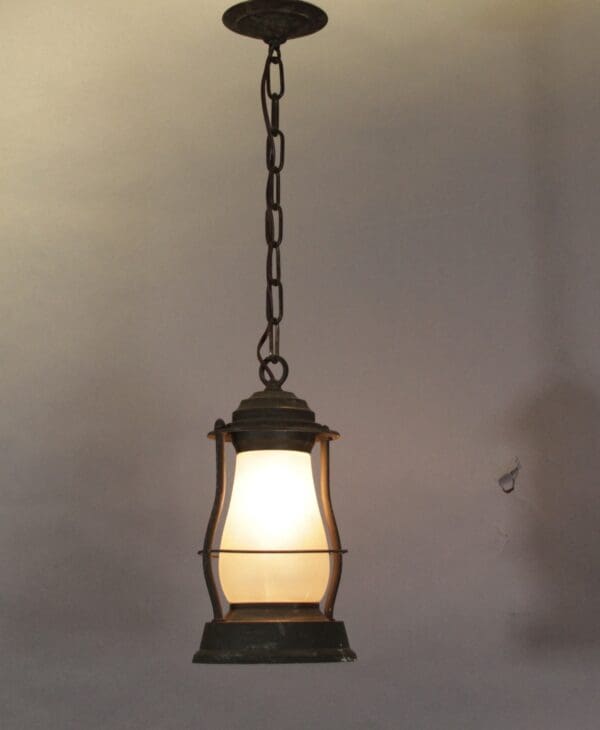 Simple exterior lantern with original glass. The total height has seen is 28″ H x 6.75″ W the body of the lantern is 12.5″ H