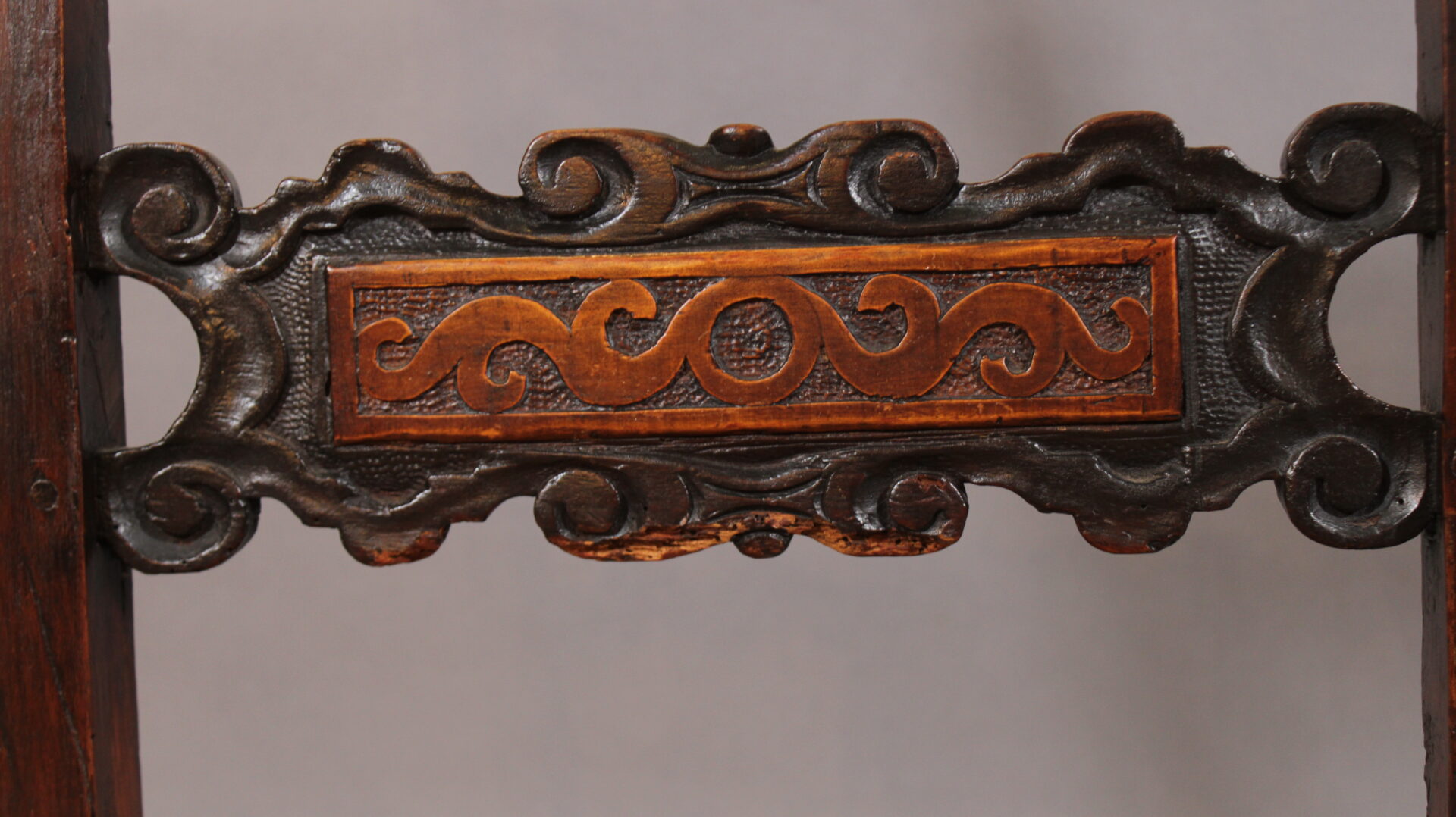 Desk chair circa 1800’s. 38.5″ H x 17.5″ W x 17.75″ D