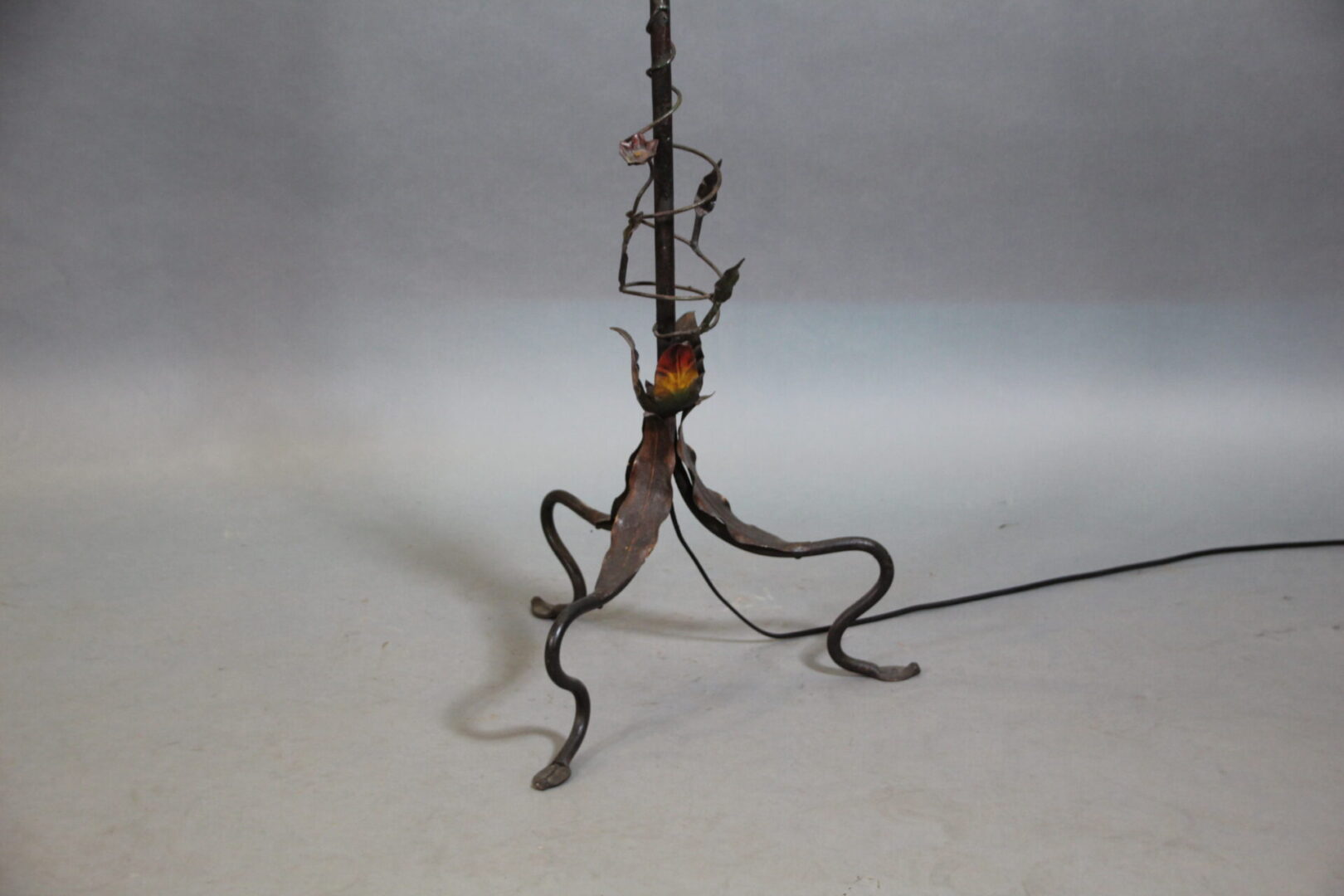 Iron and brass 1920’s torchiere floor lamp. 66.5″ H x 15″ W x 15″ D