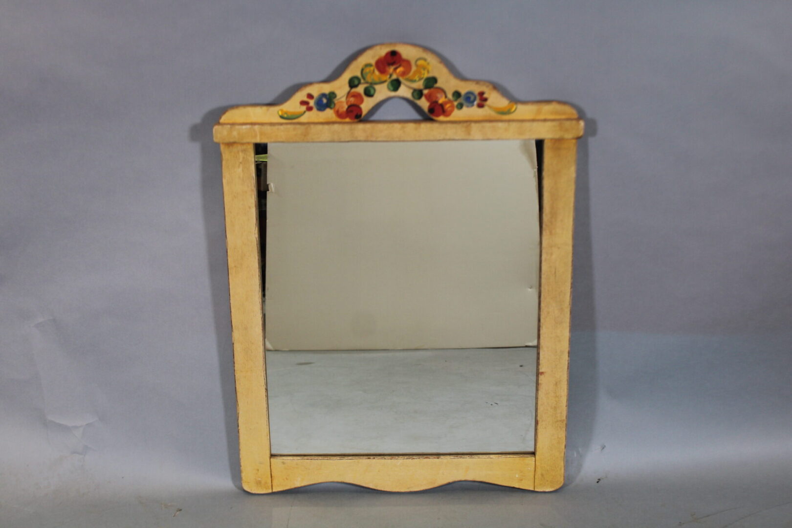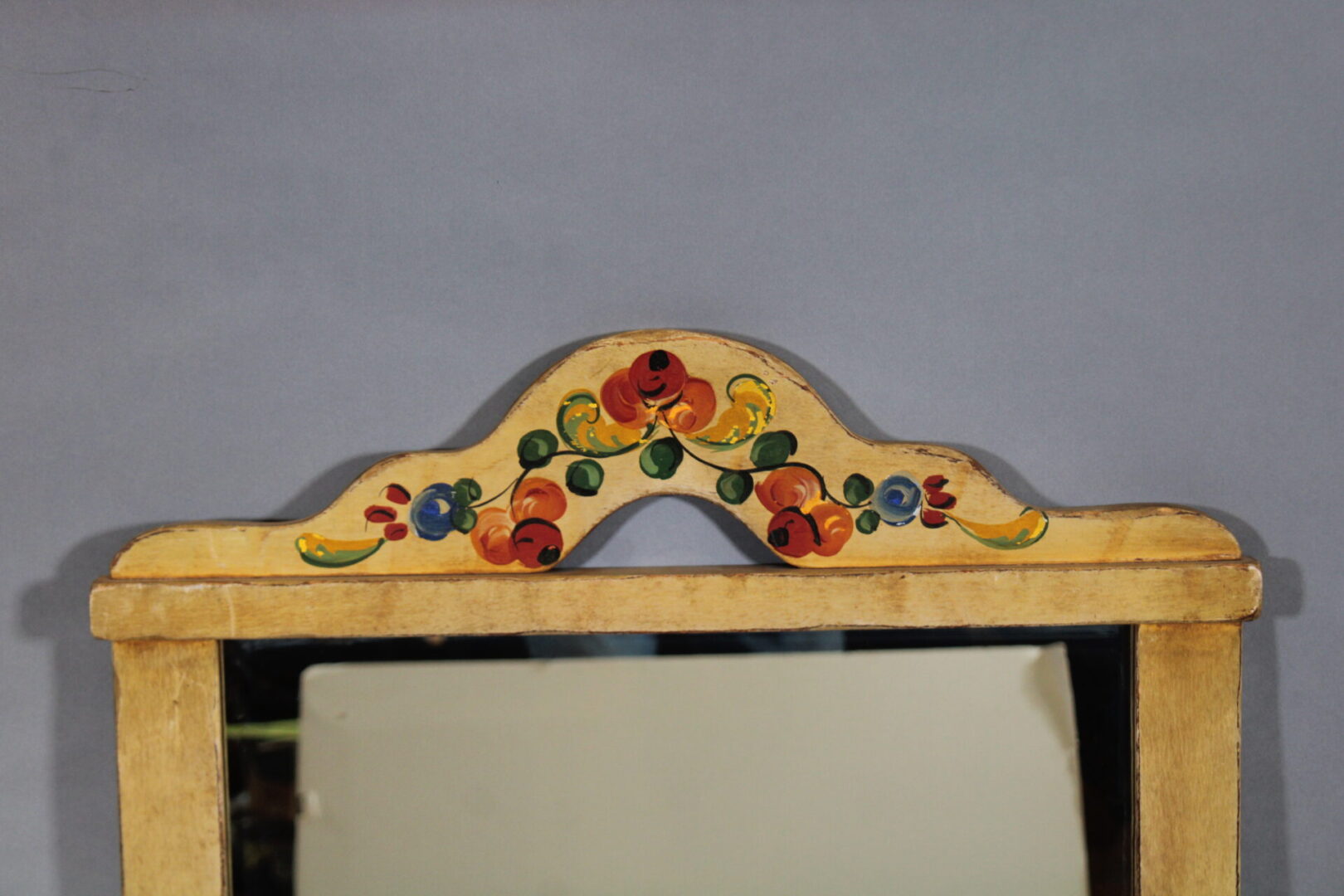 Circa 1920’s vibrant hand painted Monterey mirror. 32.75″ H x 24.5 ” W x 1.25″ D