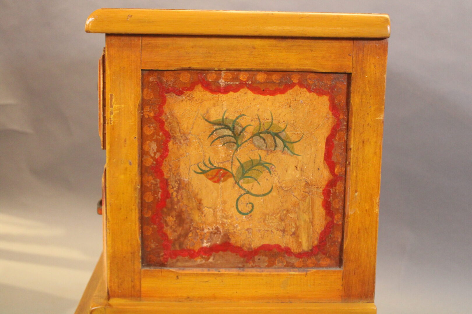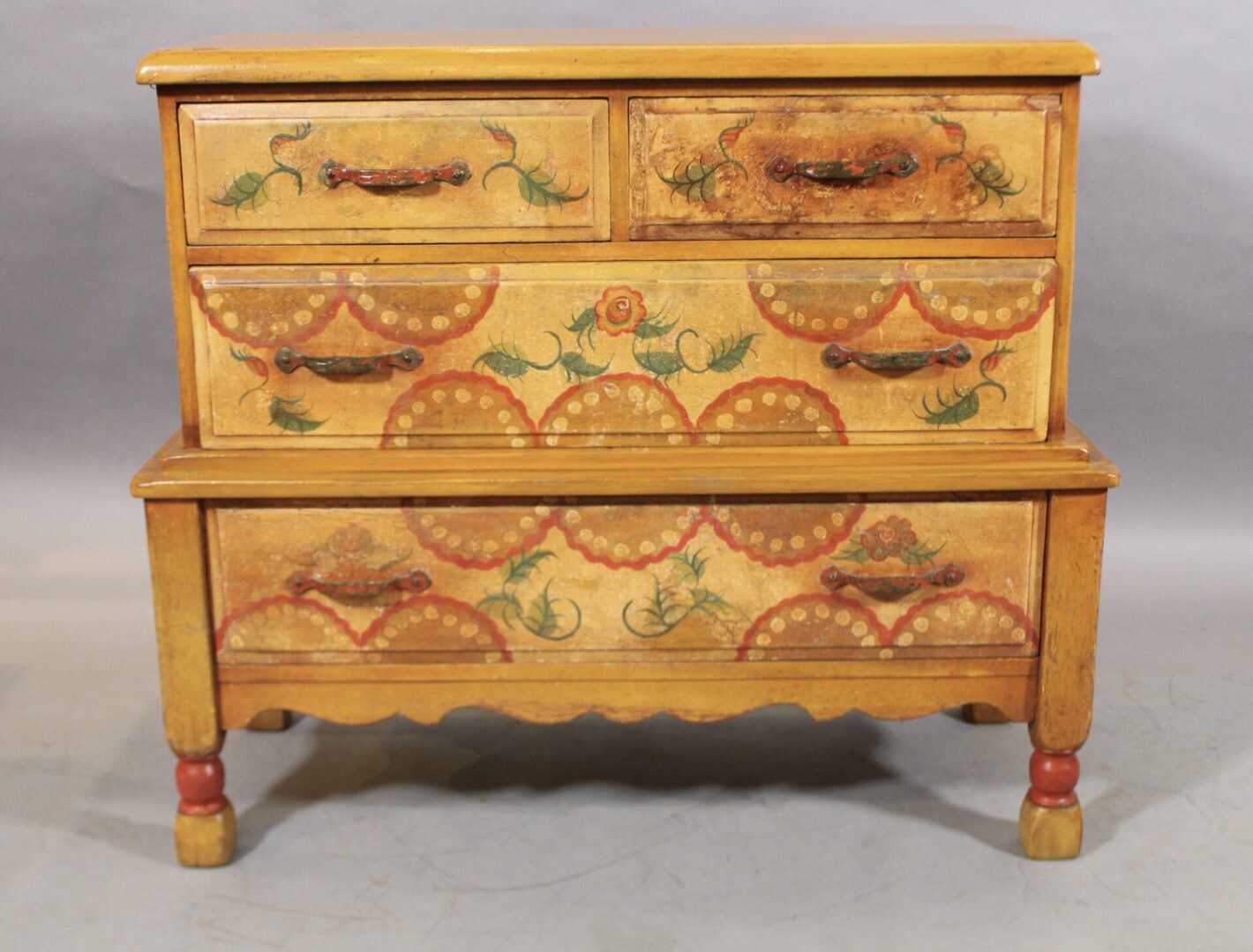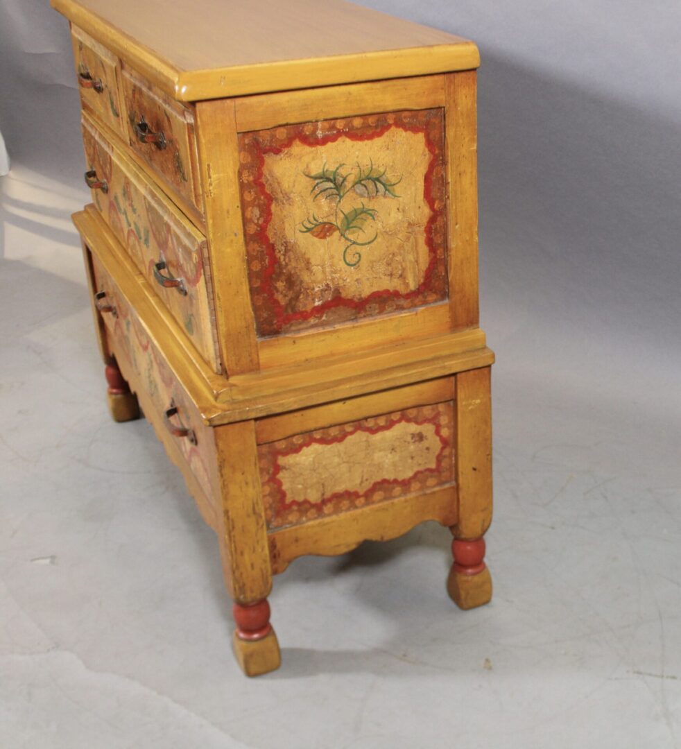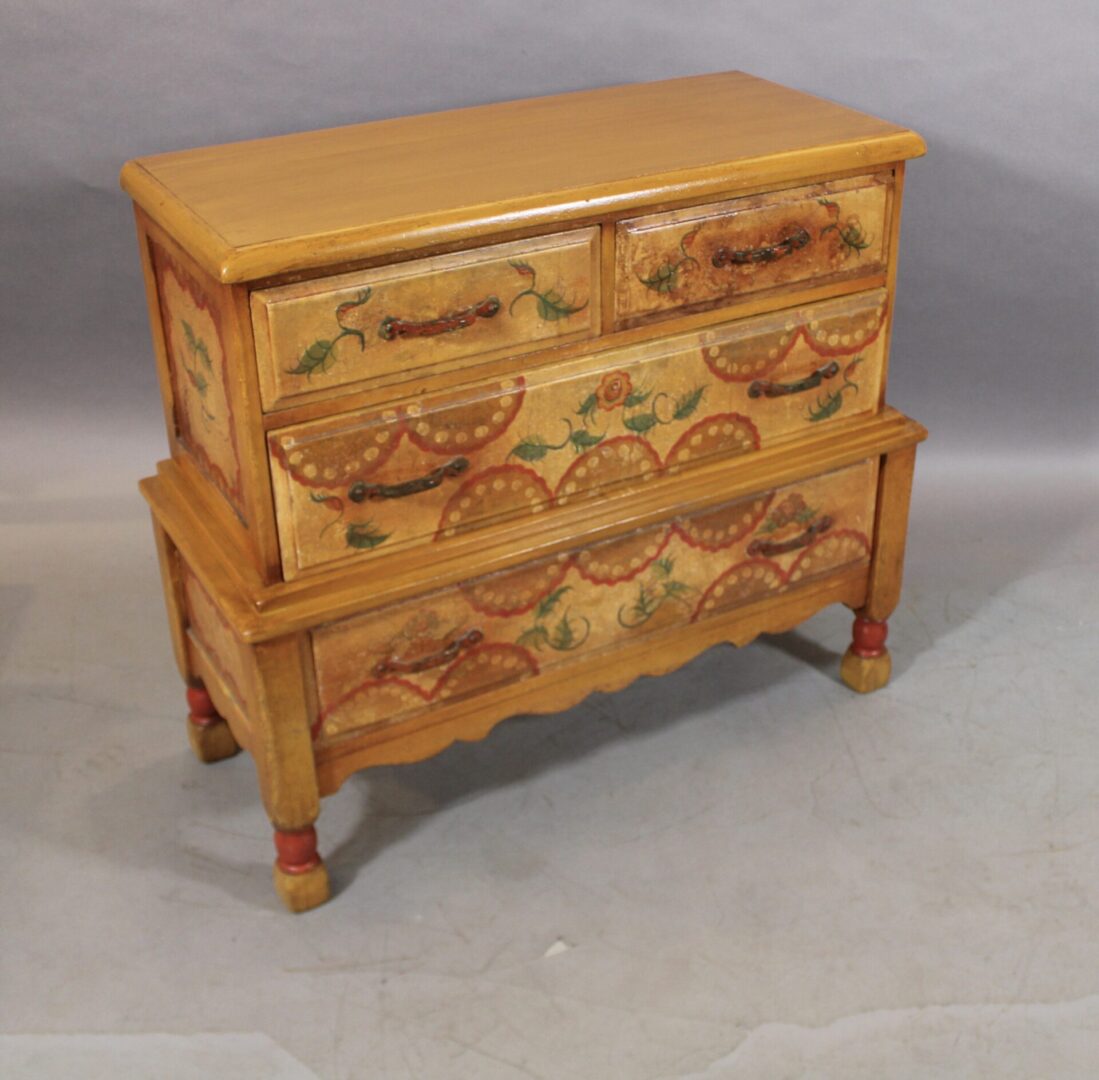 Circa 1920’s dresser with highly painted drawers and sides. 37″ H x 42.5″ W x 18″ D