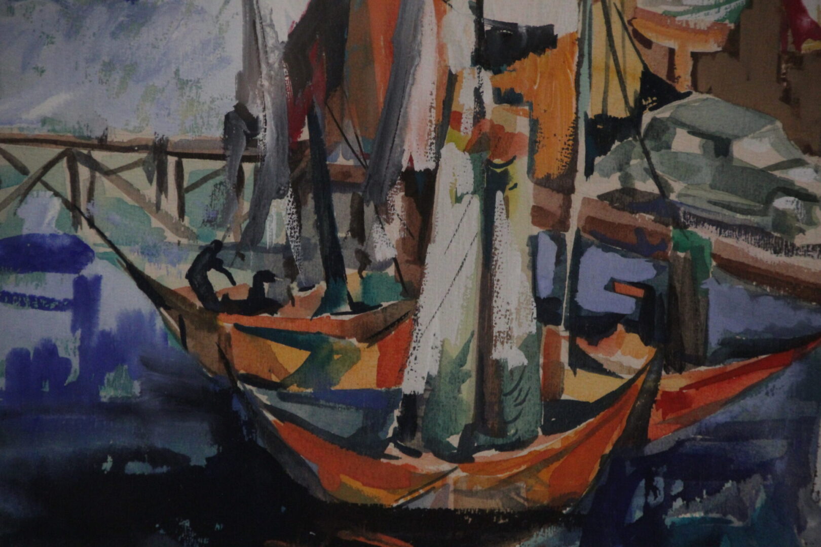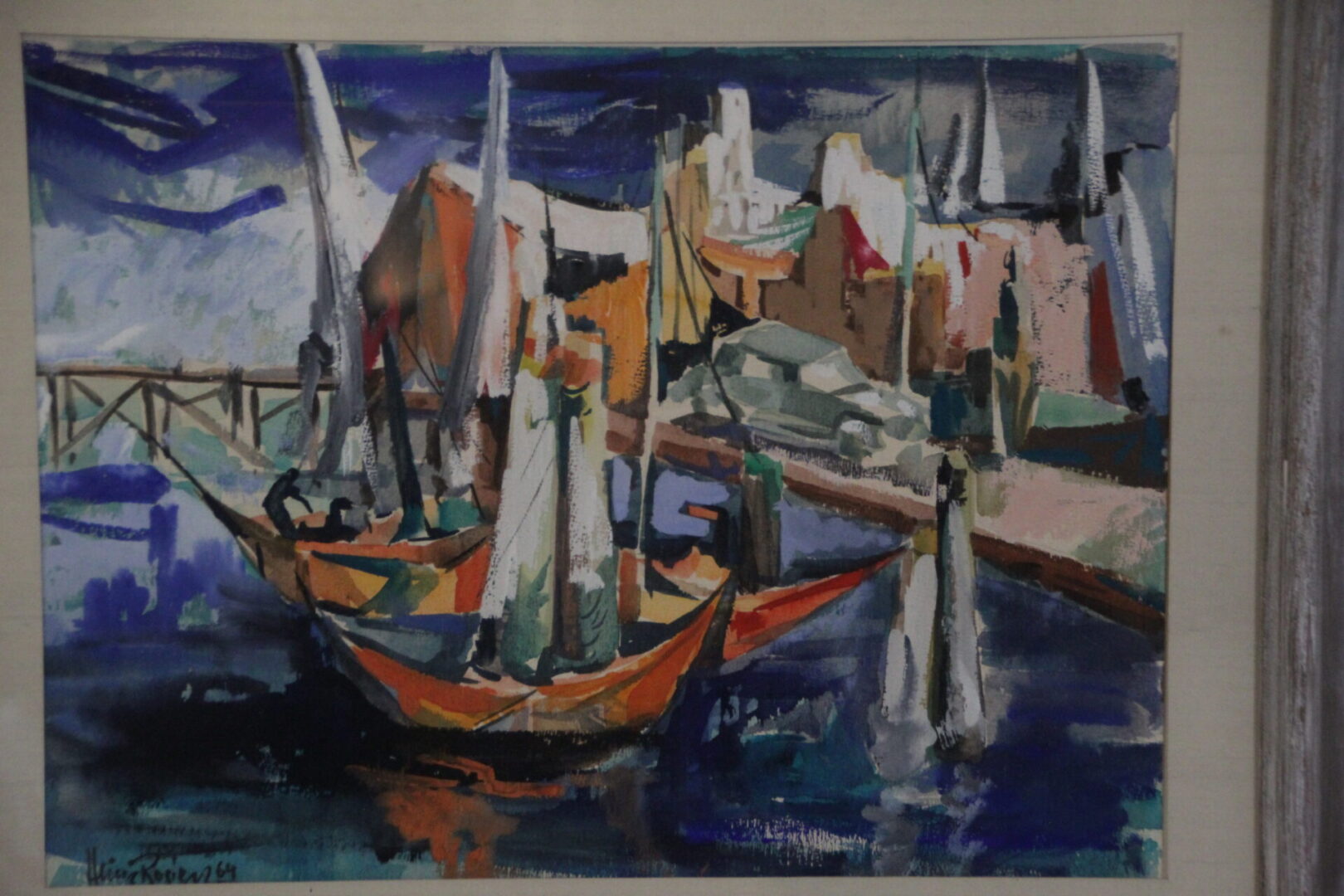 41355. Port Scene by Mid Century California Artist Heinz Rozien Circa 1964