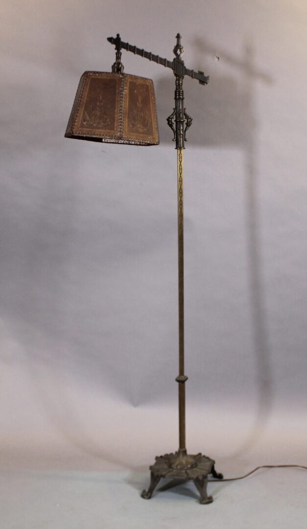 Circa 1920’s floor lamp with original mica shade. 58″ H x12″ w x 19″ D