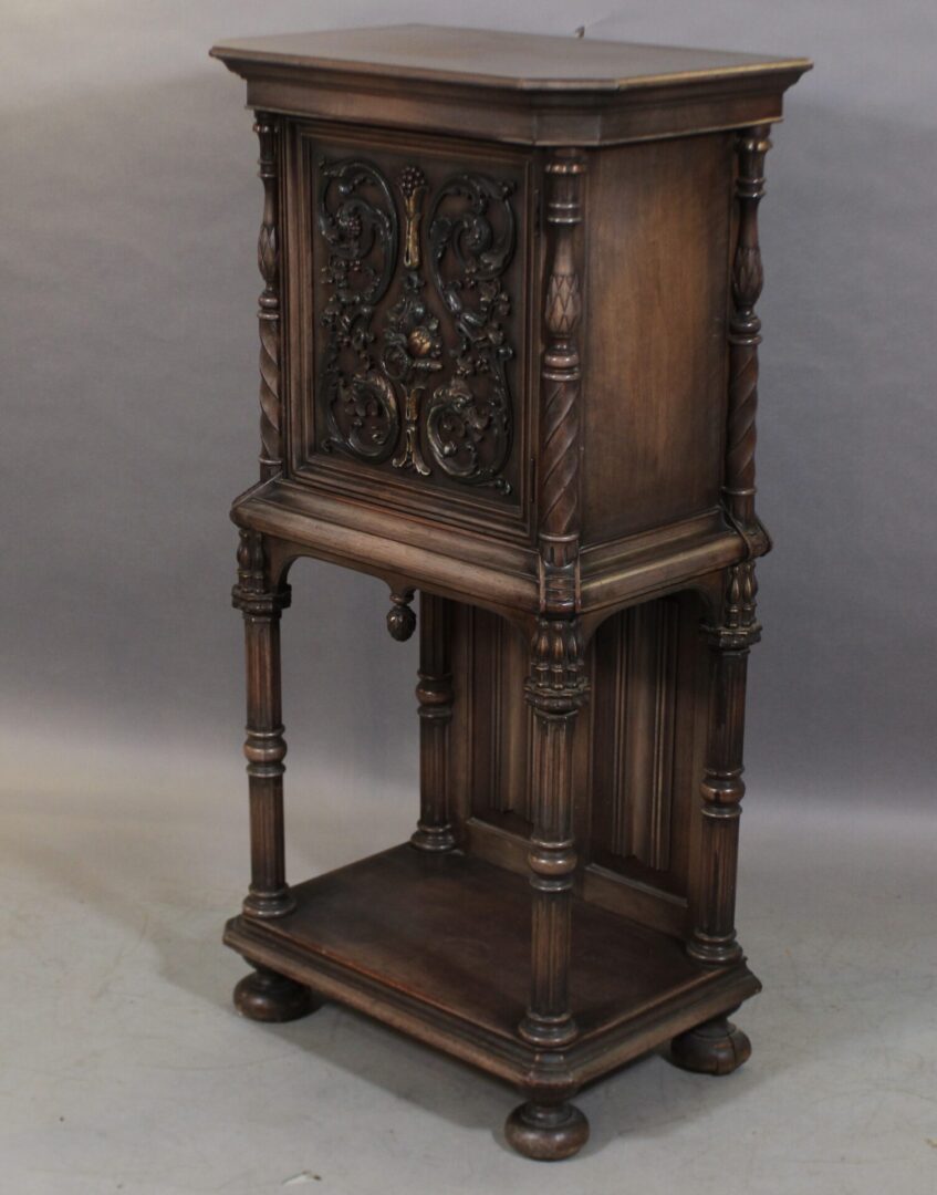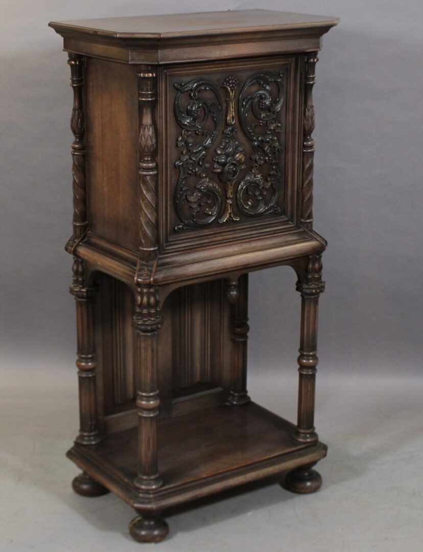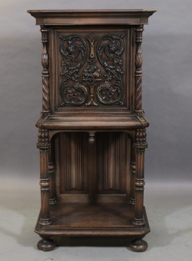 41300. Spanish Revival 1920’s Tall Cabinet With Carved Details