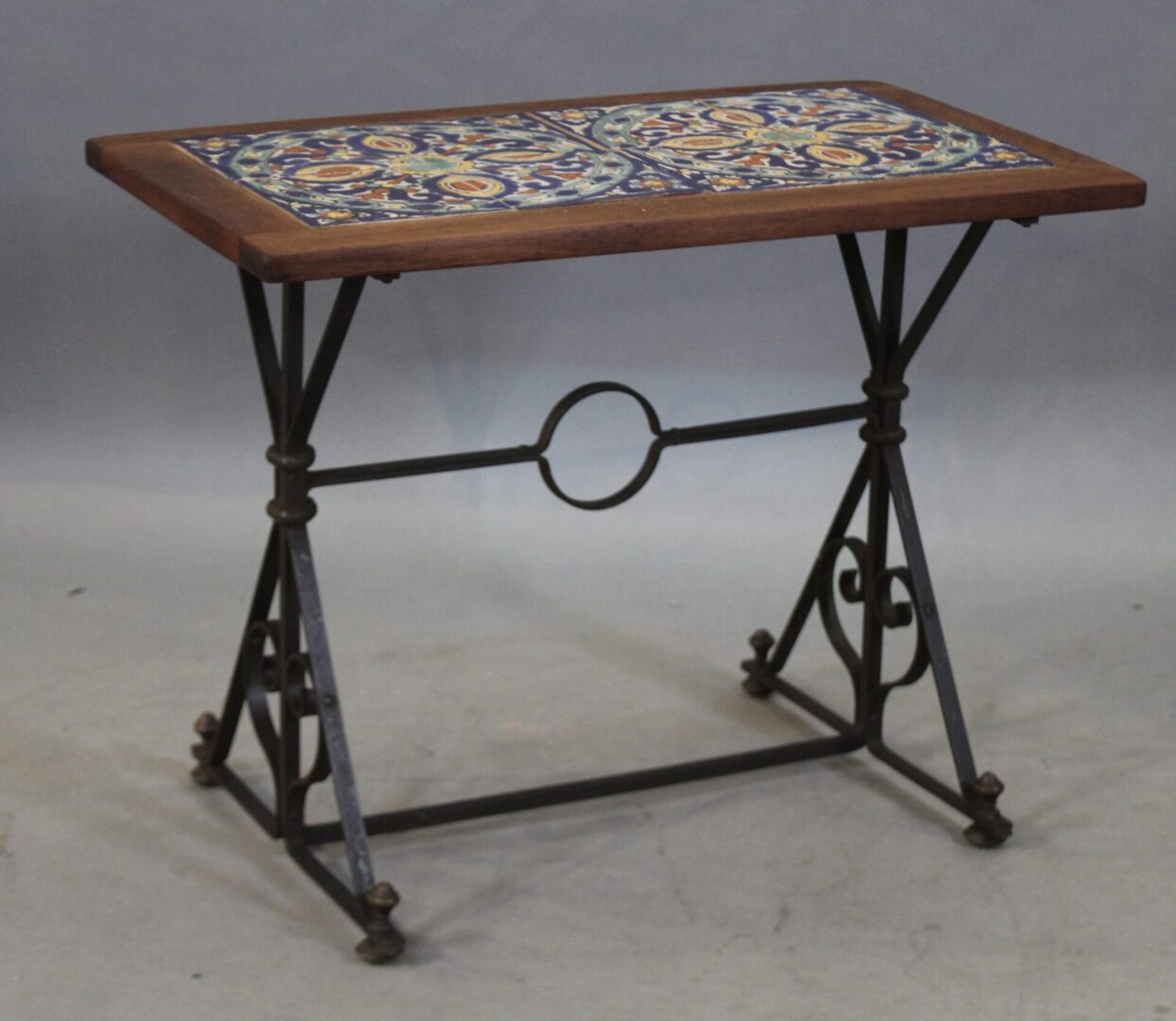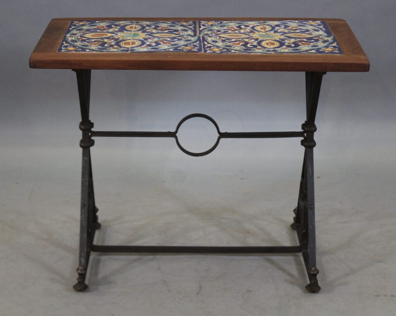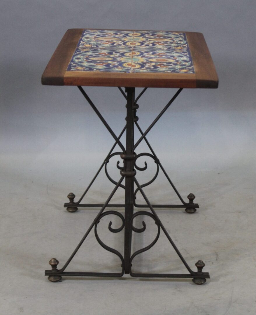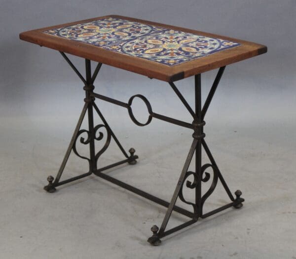 43305. Spanish Revival Original Tile Table With Iron Base