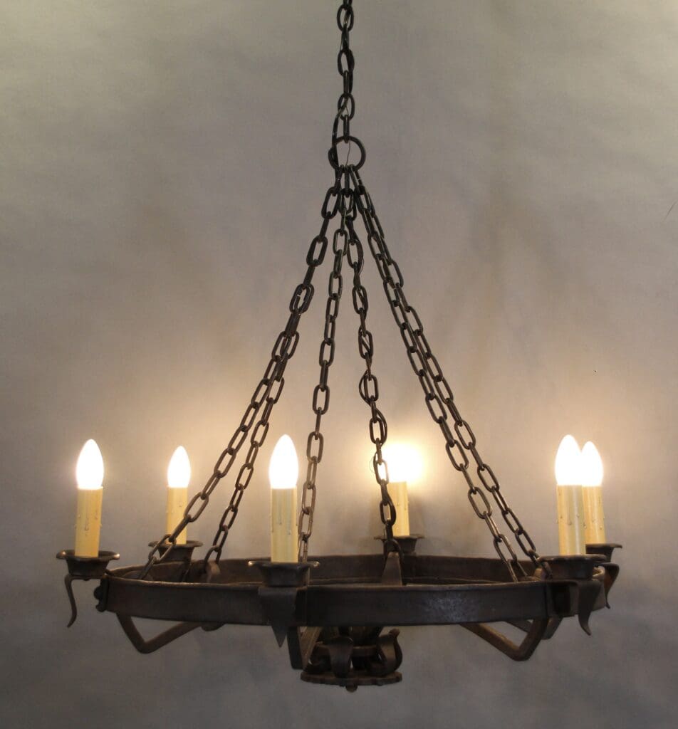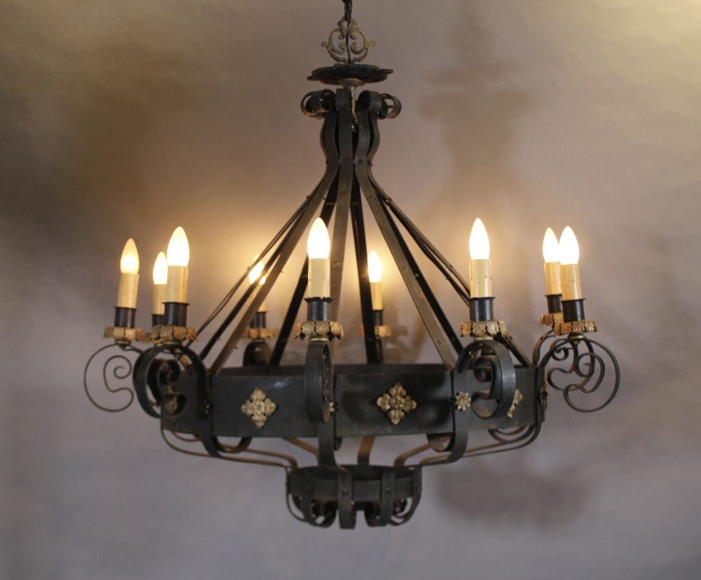40633. Rare Larger Scale Spanish Revival 1920’s Iron Chandelier