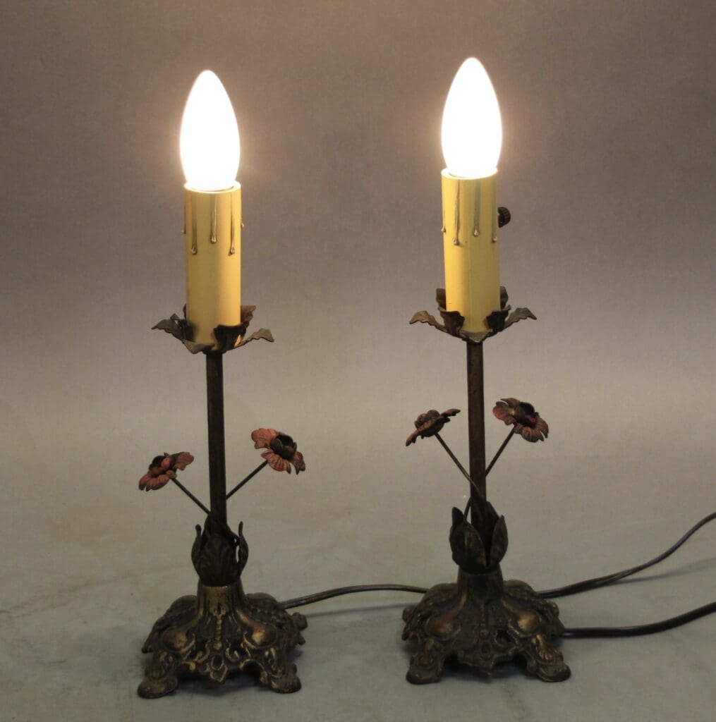 40656. Pair Of 1920’s Table Lamps With Floral Motif