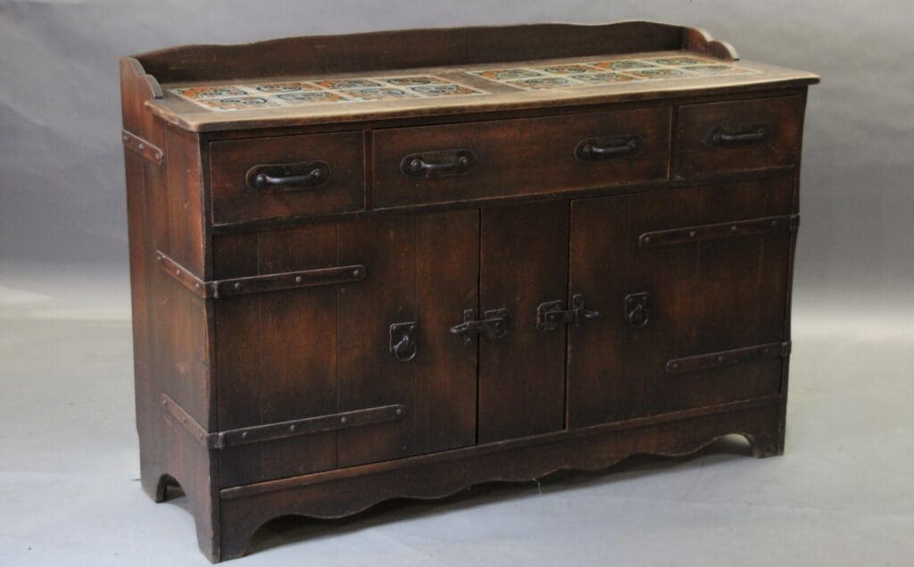 All original 1920’s Monterey sideboard with tiled top. 41″ H x 60″ W x 21″ D