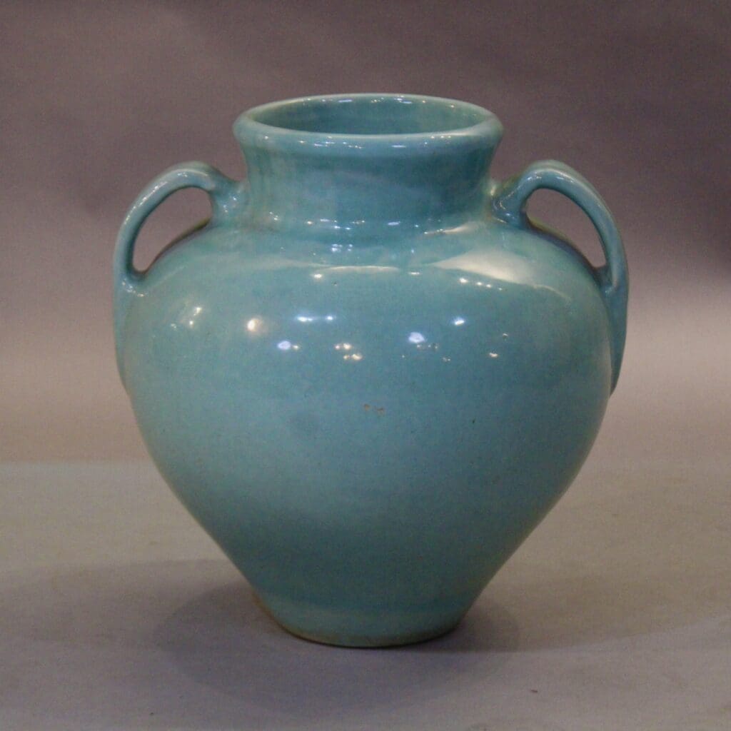 Elegant oil jar in a beautiful teal glaze. 17″ H x 17″ W x 16″ D
