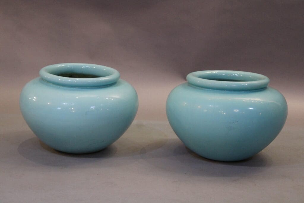 40755. Pair Of Pacific Planters With Blue Glaze