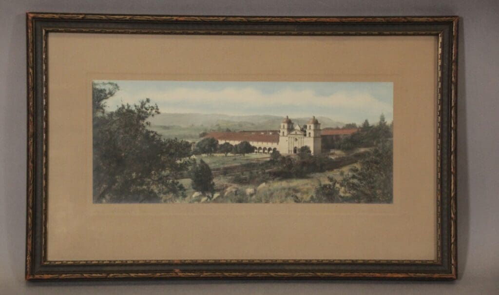 40908. Large Scale 1920’s Hand Tinted Photograph Of Santa Barbara Mission