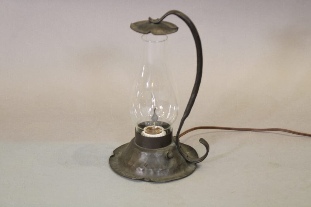 40695. 1920’s Monterey Rancho Period Table Lamp With Hurricane